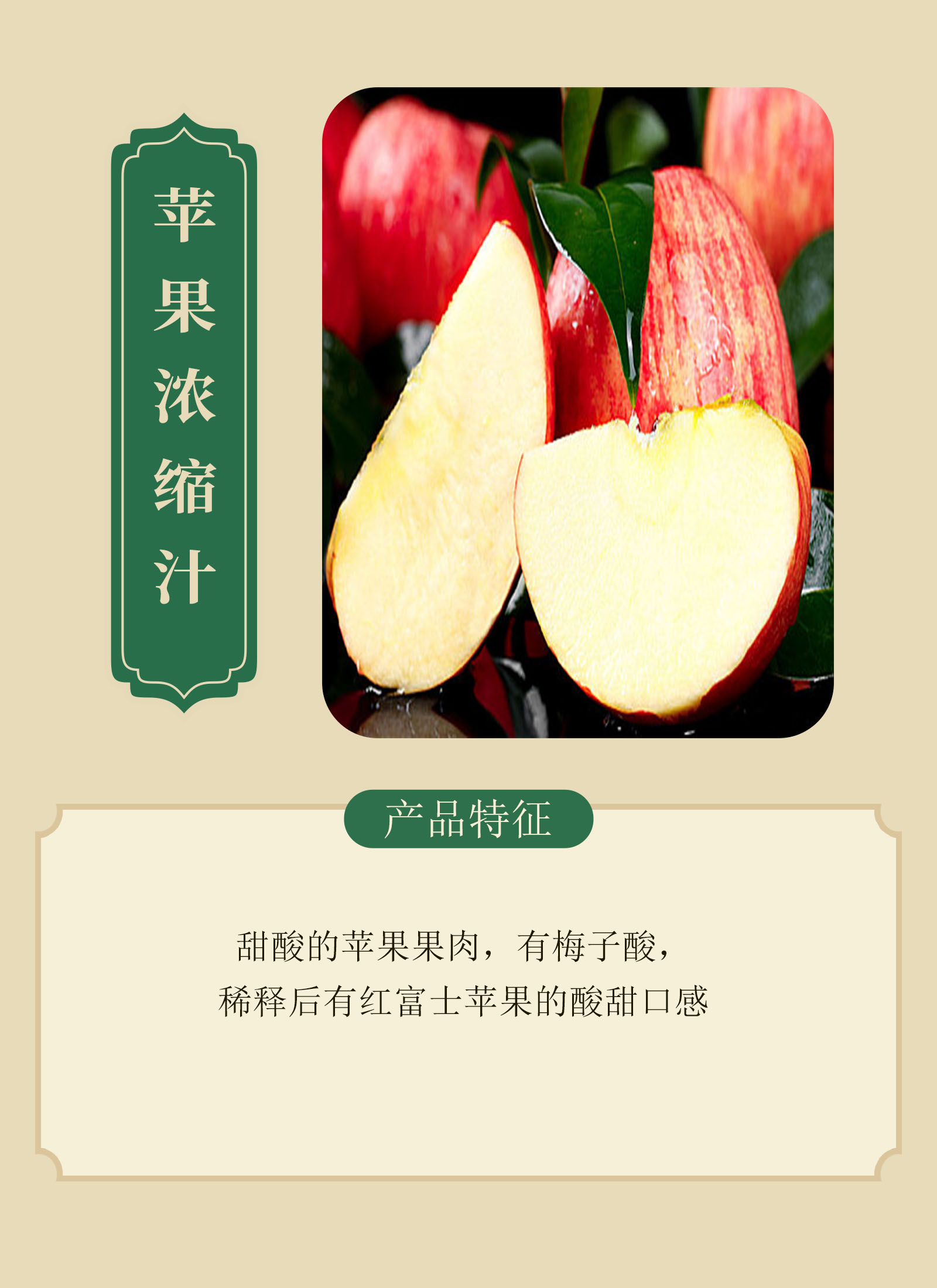 甜酸的蘋(píng)果果肉,有梅子酸,稀釋后有紅富士蘋(píng)果的酸甜口感