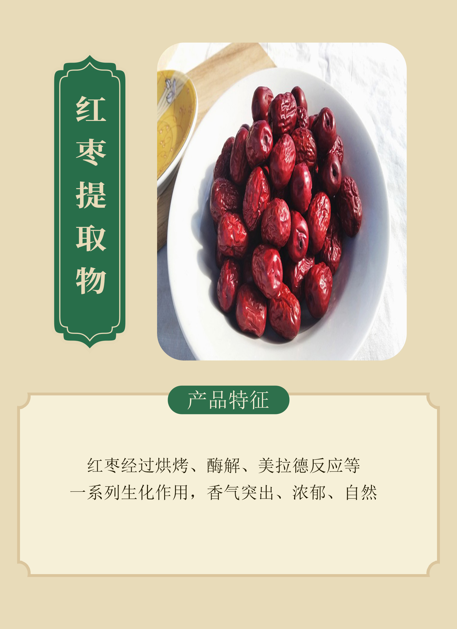 產品特征:紅棗經過烘烤、酶解、美拉德反應等一系列生化作用,香氣突出、濃郁、自然